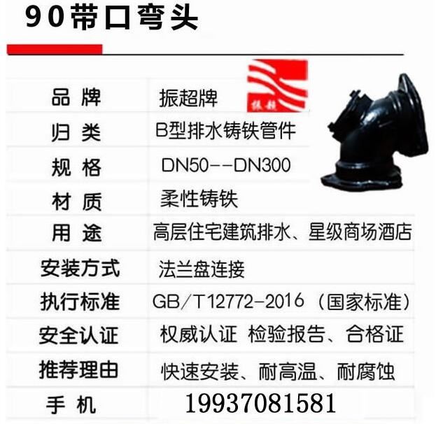 振超牌B型鑄鐵排水管件,柔性鑄鐵,法蘭盤鏈接,快速安裝,耐高溫,耐腐蝕;用于高層住宅建筑排水、星際商場酒店。