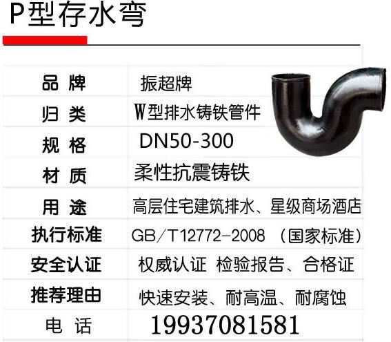 柔性抗震鑄鐵排水管件W型P存水彎頭