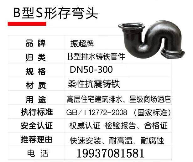 振超牌B型鑄鐵排水管件,柔性抗震鑄鐵,快速安裝,耐高溫,耐腐蝕;用于高層住宅建筑排水、星際商場酒店。