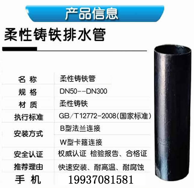 W型鑄鐵H管/柔性鑄鐵H管